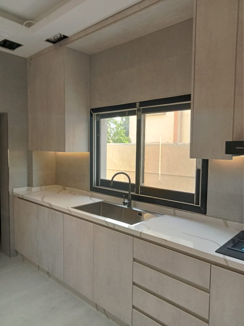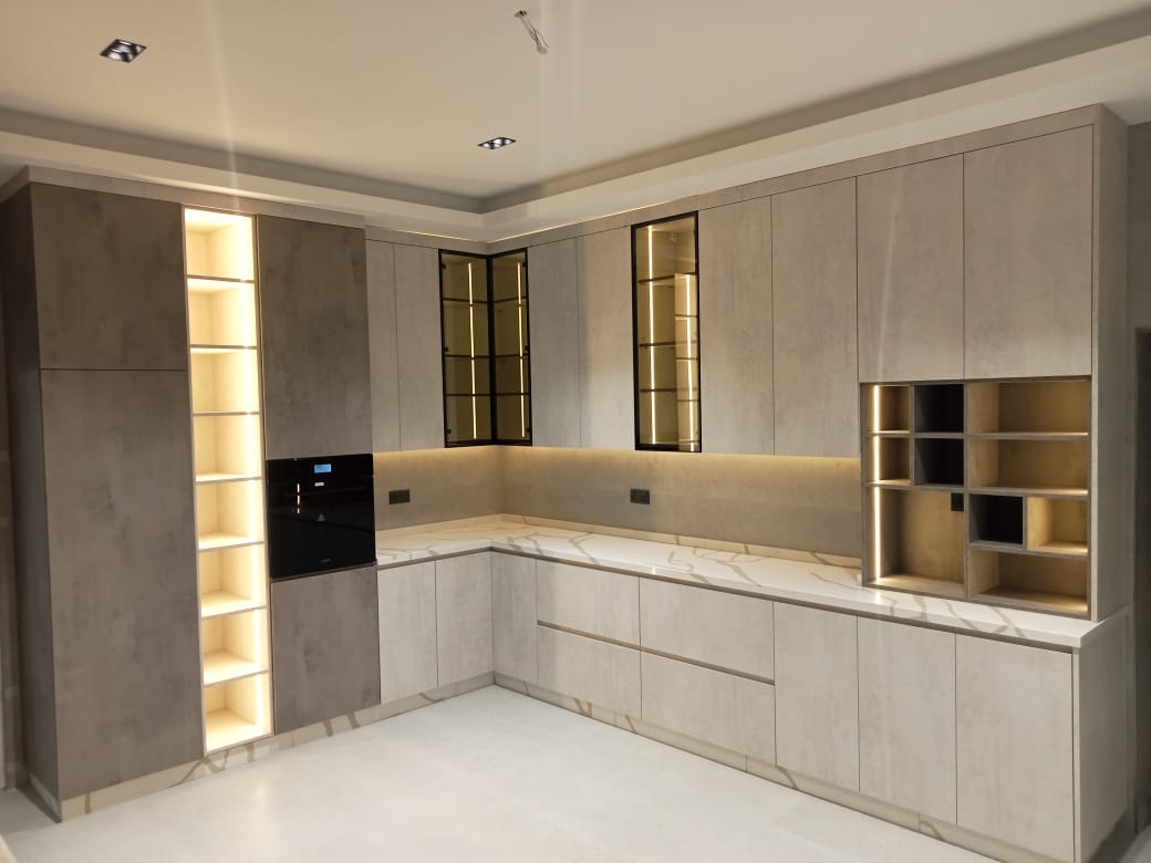نمط مودرن ابيض مع تطعيمة دهبى وتوب رخام