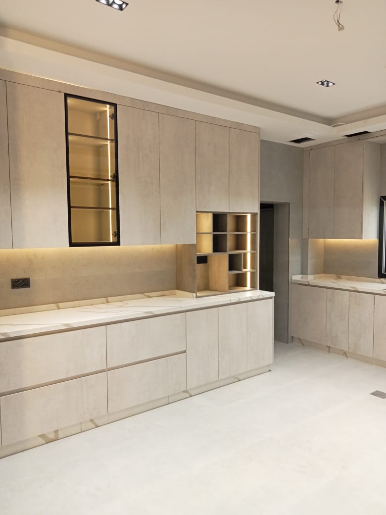 نمط مودرن ابيض مع تطعيمة دهبى وتوب رخام